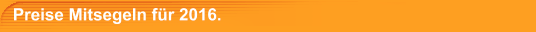| Zeitraum | €/Wochentörn | €/10 Tage Törn | €/14 Tage Törn | | | | | | 14.05. - 09.07.2016 | 550.- | 820.- | 1050.- | | 09.07. - 03.09.2016 | 590.- | 870.- | 1140.- | | 03.09. - 01.10.2016 | 550.- | 820.- | 1050.- |